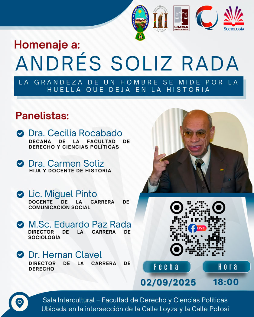 Desde el jueves 14 de noviembre, el M.Sc. Eduardo Paz Rada fue designado como nuevo director de la Carrera de Sociología de la UMSA, tras la aprobación del informe del Comité Electoral por parte del Consejo Universitario.