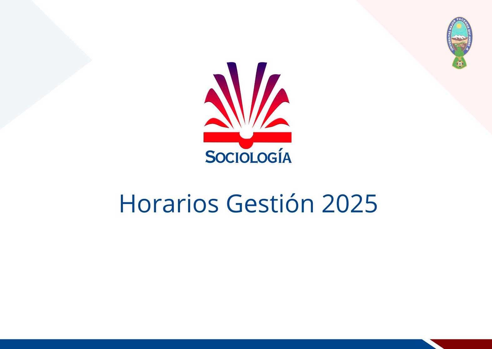 La carrera de Sociología, de la Facultad de Ciencias Sociales-Universidad Mayor de San Andrés (UMSA), esta gestión, cumple 52 años de vida académica e institucional. Sus acciones están orientadas a la formación de profesionales sociólogos con conciencia social que contribuyan, fundamentalmente al desarrollo de las ciencias sociales y a la gestión social del desarrollo.